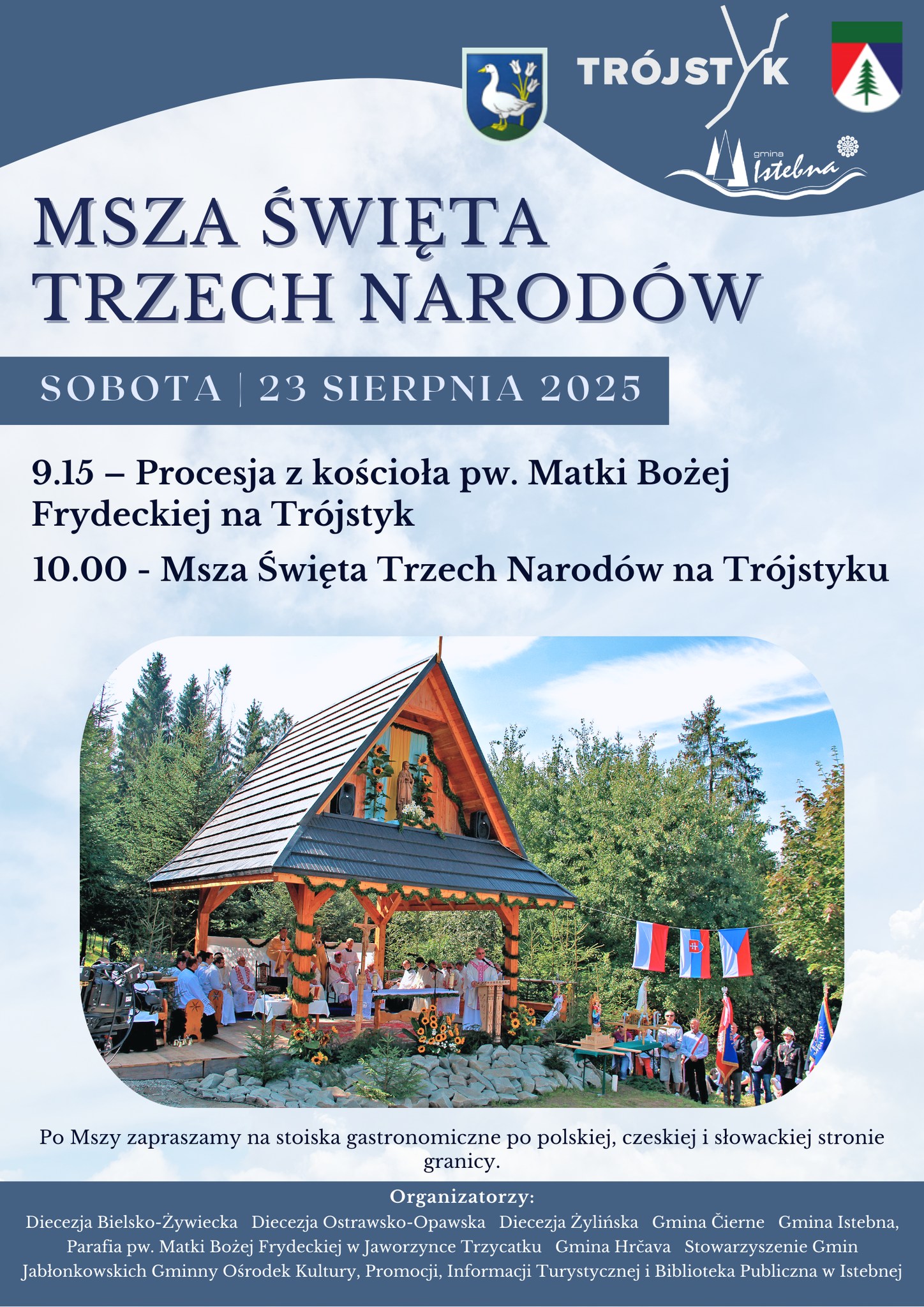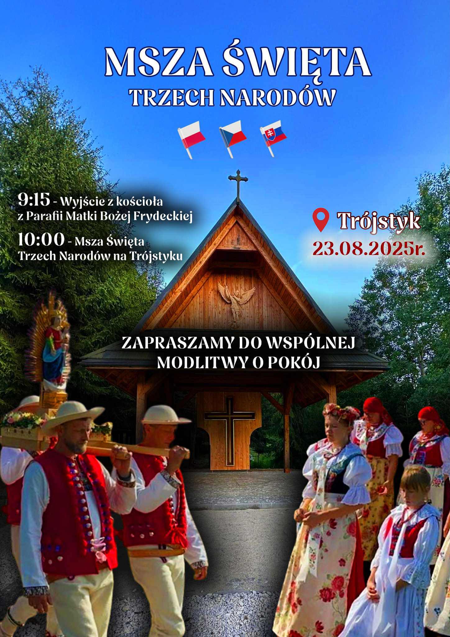Wydarzenie rozpocznie się  o godzinie 9.00 w kościele Matki Bożej Frydeckiej w Jaworzynce Trzycatku, skąd procesja wyruszy do ołtarza polowego na Trójstyku. Uroczysta Msza Święta w języku słowackim sprawowana będzie o godz. 10.00 na Trójstyku.
