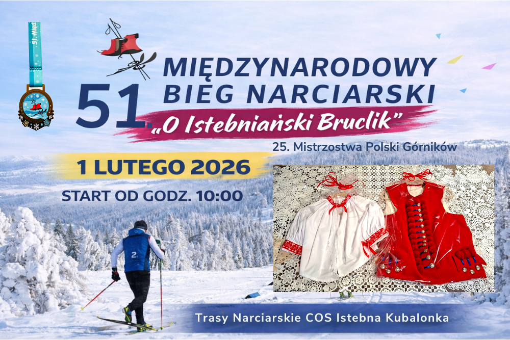 Wszystkich amatorów biegania na nartach oraz zdrowego trybu życia zapraszamy do udziału w tradycyjnym 51 Międzynarodowym Biegu o Istebniański Bruclik, który odbędzie się już w najbliższą niedzielę 1 lutego 2026 roku.