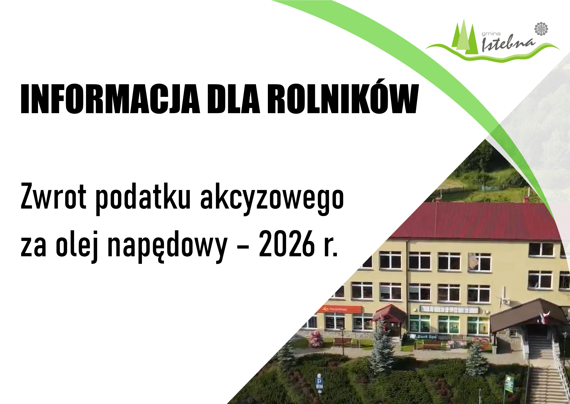 Rolnicy mogą ubiegać się o zwrot podatku akcyzowego zawartego w cenie oleju napędowego wykorzystywanego do produkcji rolnej. Wnioski należy składać do Wójta Gminy właściwej ze względu na miejsce położenia gruntów rolnych, w następujących terminach: